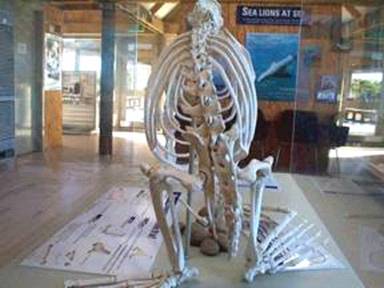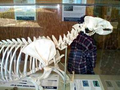 In the early days you could have the island to yourself and it was possible to walk the entire length of the beach at Seal Bay amongst the mostly sleepy and sometimes inquisitive and playful younger sea lions. Those were the days. Visits to the beach to view the seals is now limited to a brief tour with the ranger every 30 minutes through out the day and you can only walk to within 20 feet of the entire colony of seals. Today people visit the island by the hoards, see all of its major sights in a day and return to the mainland without enduring much of the tricky gravel roads. The adventure has given way to en masse tourism and environmental soundness. Leaving a cloud of red dust and finding uninhabited places has always been a favorite holiday and escape for me. Driving on KI without experience on gravel roads can be tricky and many foreign visitors have ended up rolling their vehicle whilst negotiating a simple bend while for me it is a joy. So for me visiting Kangaroo Island was truly a get away and an adventure. Again this last time did not disappoint me despite the many more tourists, the sealed roads and the limited entry to this National Park. As well as a sealed road, a ranger's office had been built and a board walk constructed across the delicate sandy environment to manage the tens of thousands of visitors each year to the bay. On this most recent visit to Seal Bay with my sons, for the very first time I entered the ranger's office and was immediately taken aback by the full size skeleton of the Australian Sea Lion. It was of a large animal perched on both its front and hind limbs (fore and hind flippers) with its head forward. A mature female I thought. I was particularly taken by the size and shape of its spine. The neck vertebrae were larger than the lumbar vertebrae, opposite to humans and most mammals. Indeed an upside down spine. The neck vertebrae had massive transverse processes (a transverse process is wing shaped bony protuberance from the body of the vertebrae for the attachment and action of muscles). Two extraordinary large scapulae were slung either side at the base of this huge neck while a tiny barely recognizable pelvis supported the hind legs. Why have a spinal column decreasing in size from the head to the tail and why such large scapulae and such a small pelvis? My first impression was to do with the weight bearing through the front or fore flippers for locomotion on land and during stance when the big male bulls confront each other in competition over the females. The seals can stand upright with the head directed vertically and straight up from the fore flippers. Two large bulls will engage in a confrontation in this posture with the weight bearing through the fore flippers and hence my first impression of the large neck and scapulae being related to locomotion on land and fighting.