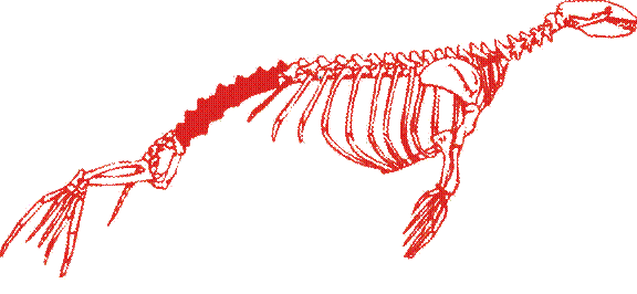 ![]() Eared seals (including the Australian Sea Lion) have a small external ear and swim using the large fore flippers as the major force for propulsion while the hind flippers are used for steering. The propulsive motion of the fore flippers is like that of oars, the fore flippers pull inward toward the body and hence the seal can "fly" along like penguins. The major locomotor action emanating from the fore flippers and front half of the body determines the large cervical and thoracic vertebrae and huge scapulae. Hence my first impression for the reason for this upside down spine was wrong. My attention in the observation of this amazing anatomy was with the seal's ability to move on land and not in the sea. The eared seal can actually "walk" on land as we know from the circus and aquarium seal. The seal advances each fore flipper alternately while shifting its body weight over the weight bearing limb by swinging the head and neck side to side (humans also shift weight but in a more evolved way without the high energy cost of throwing the head and neck side to side- see "Human Locomotion-the Fish and Crocodile story" chapter?). The hind flippers advances in the same manner and the animal walks on land using all four flippers and the body remains elevated from the ground. At higher speeds or at a gallop both the fore flippers advance together followed by the hind flippers. The true seal has less ability on land. This animal is rather clumsy and it locomotes something like a caterpillar with varying use of the fore flippers. The Grey Seal can grip onto rocks with the fore flippers and crawl forward. The Harbor Seal uses the fore flippers to weight bear and drag the rear half forward.